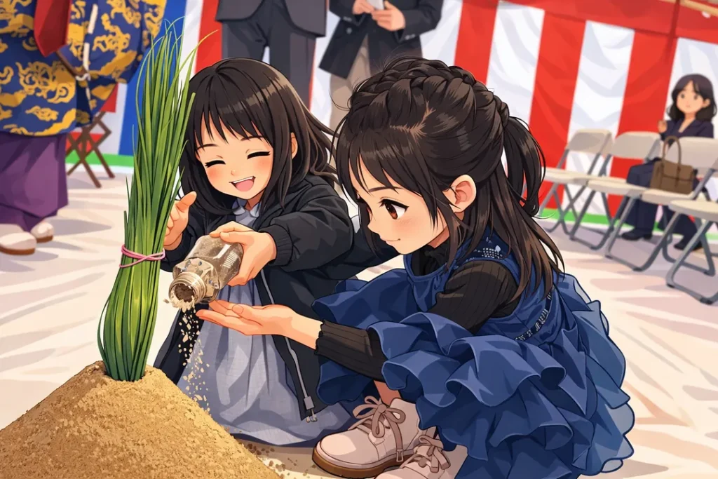 そしてその尊いお砂を、地鎮祭の場で建設予定地に撒かせていただきました。
